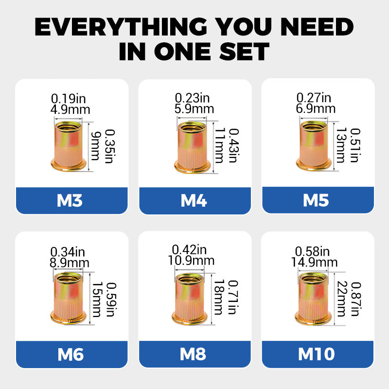🔥Hot Promotion 49% Off💥Flat Head Threaded Insert Nut Rivet Nuts Set
